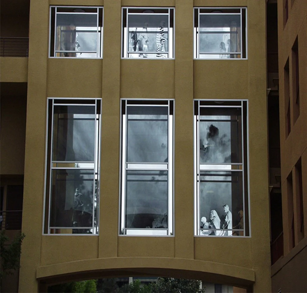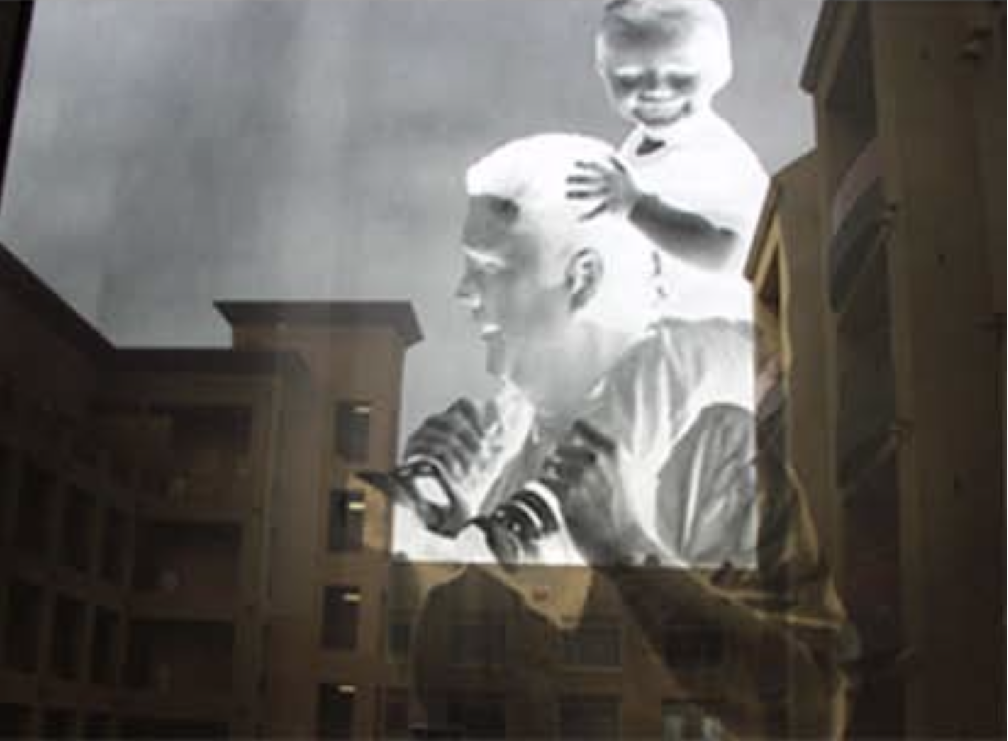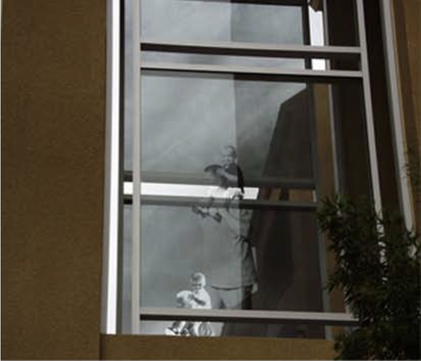 A tile monument and bench feature visually illustrates aspects of directionality and time relative to its conspicuous transportation context.