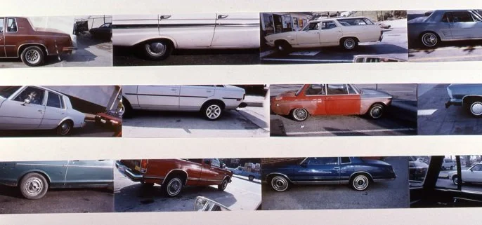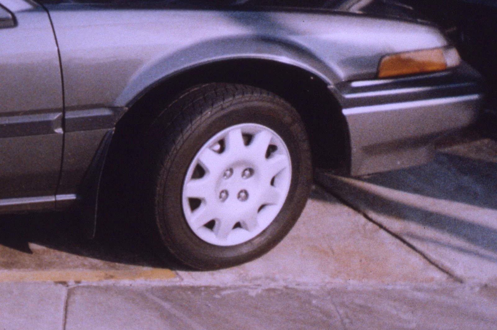 Part of an automotive Series, this work documents the incorrect hubcaps placed on cars (photographed from everyday society) as a metaphor for our fragile culture and our technological progress, resulting in inter-media installations utilizing photo and digital technology, visually dealing with the cultural impact of automotive design, specifically the wheel. This installation is seen via video media as a passing stream of vehicles and as a variable-length of panoramic photographs, mounted horizontally in a space. One challenge was to illustrate, in a relatively small space, a very large metaphorical statement. Using video and digital technology, a never-ending stream of images passed through monitors that made the metaphor apparent.