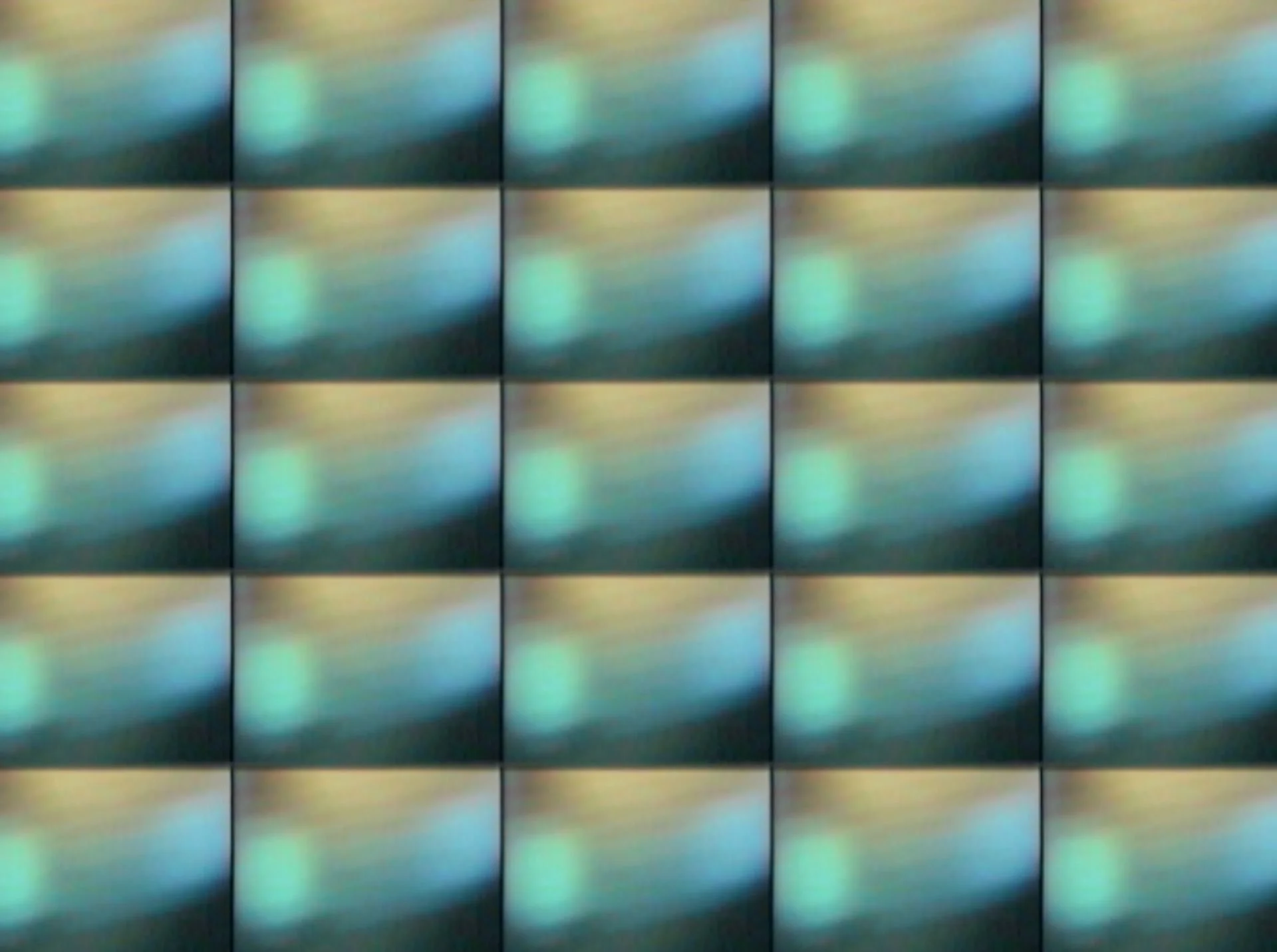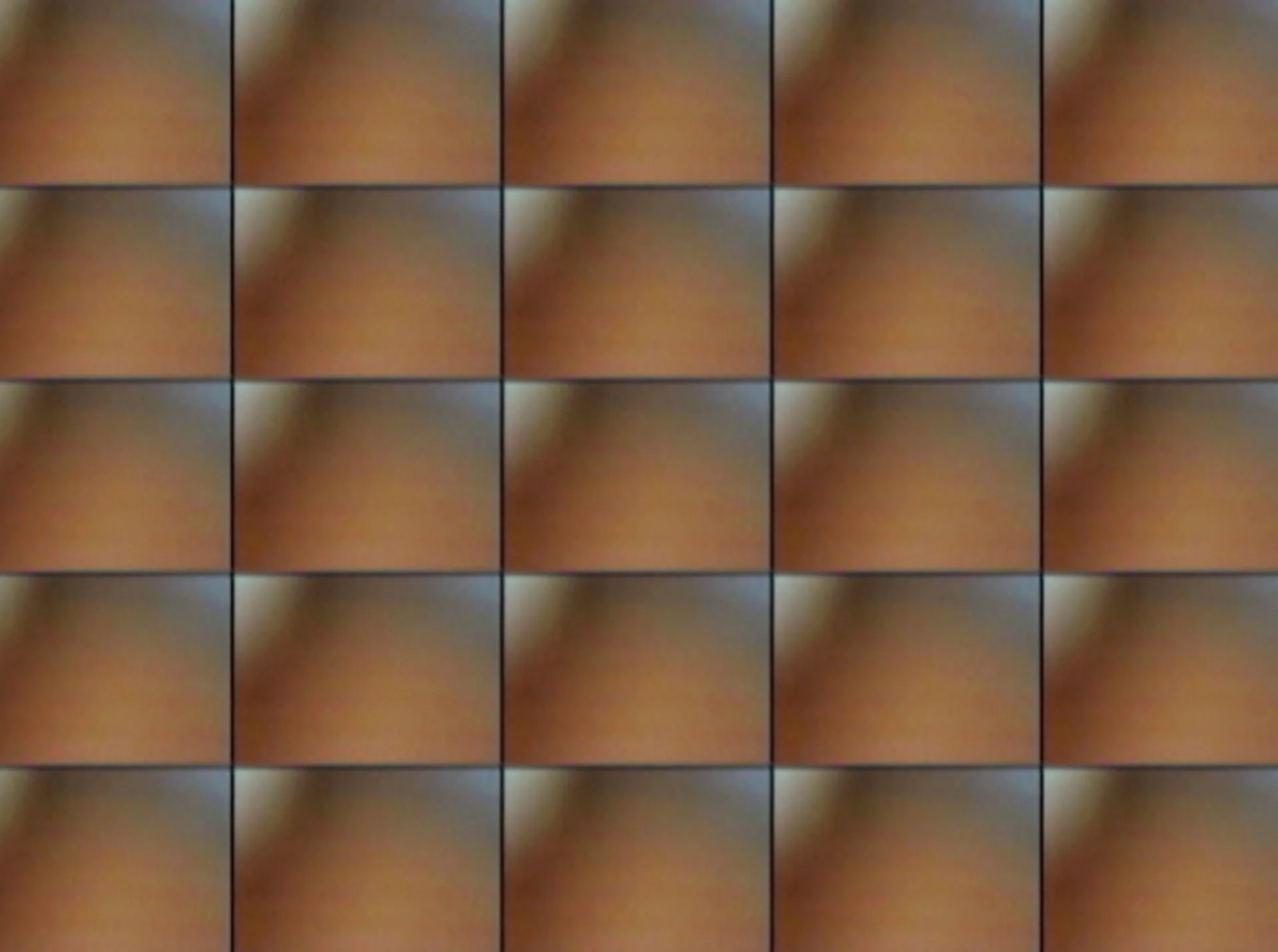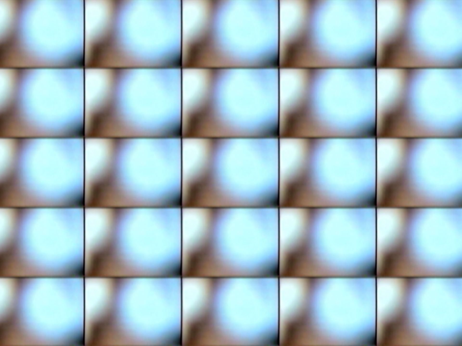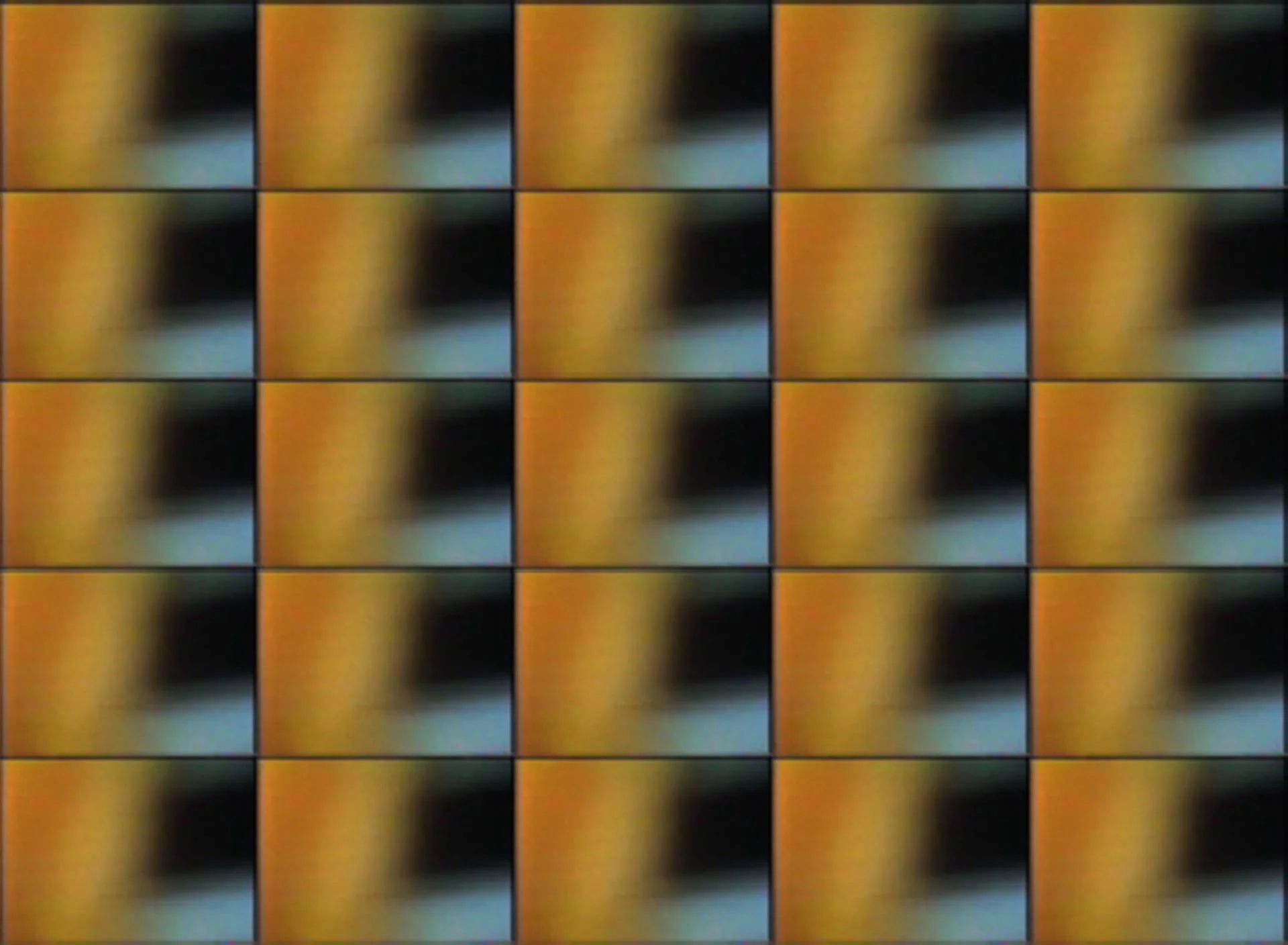 Multi-screen video projection; captured live video images composited onto 25 screens. Length 6:28 with ambient soundtrack.