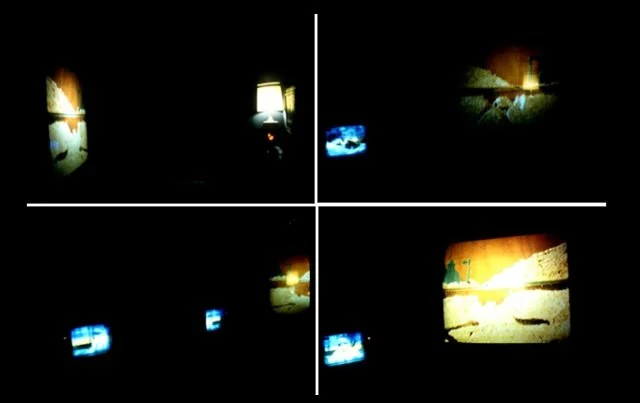 A multi-media interactive environment incorporating live and closed-circuit video feeds and video projection. Temporary location: Art Center, Pasadena, CA. Collaborative installation with William Leavitt. A complex visual layering of internal and external space through the use of transparent scrim, Mylar mirrored wall segments, live TV input and discreet lighting. All props human scale; only central large-screen ant farm projection (a closed-circuit, live view of working ants) utilized large-scale disposition.